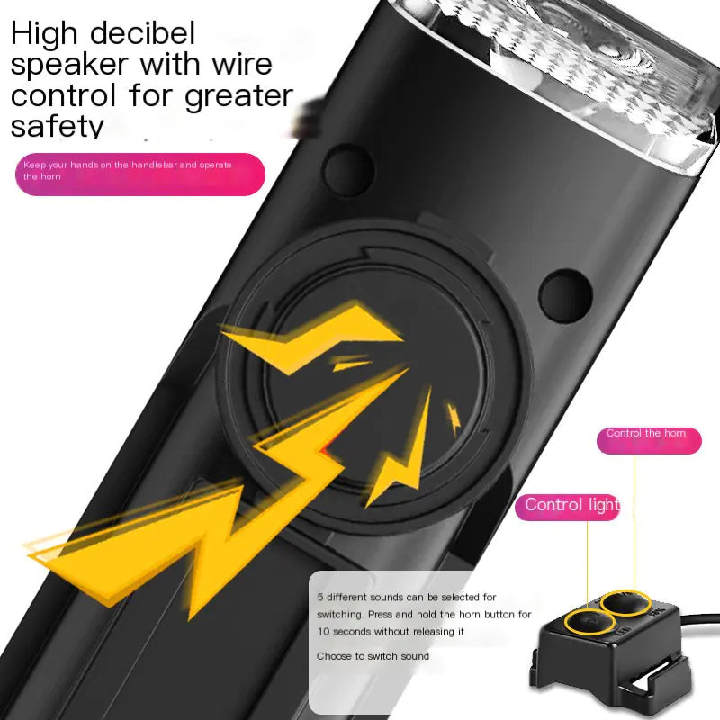 The high-performance headlight illuminates your path, making night rides safer, while the integrated high-decibel speaker lets you enjoy your favorite tunes or alerts while on the move. With its user-friendly design, this bike light is perfect for all cycling enthusiasts, whether you're navigating city streets or exploring rugged trails.