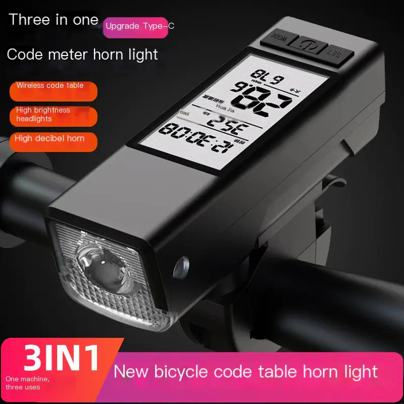 Elevate your cycling experience with the ultimate Ambush Bike Light designed for both road and mountain bikes. This innovative device combines a high-decibel speaker, a bright headlight, and a multifunctional code meter into a sleek, compact unit that ensures your safety and enhances your riding pleasure.