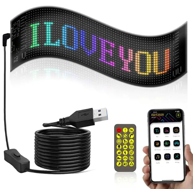 The Programmable LED Signage is an advanced, flexible, and customizable digital display solution designed for creative messaging, advertising, and personalization. With 20x64 LED beads, this upgraded version offers a bright and clear scrolling display, controlled via a smartphone app. Perfect for DIY graffiti, business promotions, or adding a unique touch to stores, cars, or personal spaces, the LED signage allows users to create custom messages, animations, and effects. Whether you're looking to attract attention, promote your brand, or simply have fun with digital art, this versatile LED display is the perfect tool for bringing your ideas to life.